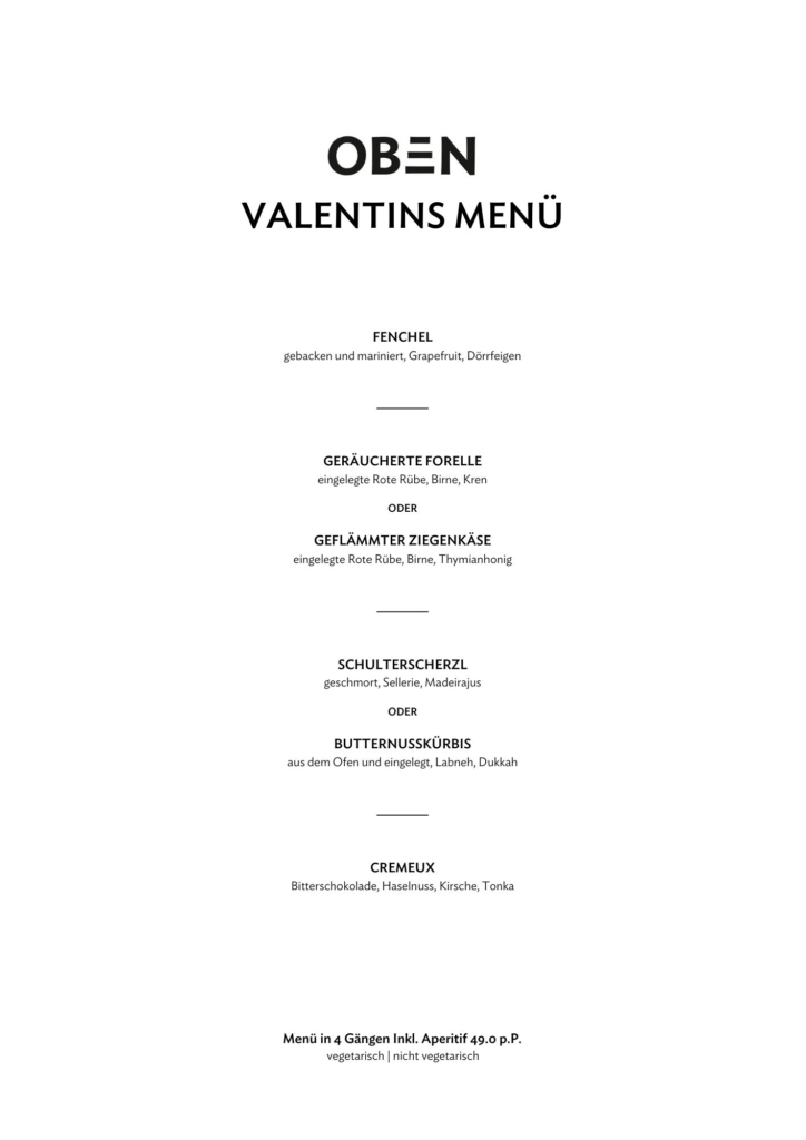 Für Gruppen ab 9 Personen schreib uns bitte ein E-Mail an reserviert@oben.at – wir kümmern uns persönlich um Deine Anfrage. Wir beantworten alle E-Mails verlässlich, bitten aber um Verständnis, dass unser Postfach nicht durchgehend besetzt ist.